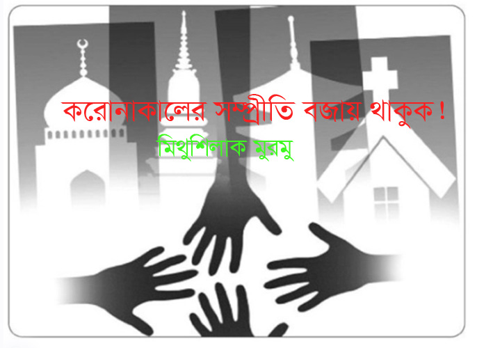 প্রাকৃতিক দুর্যোগের দেশ বাংলাদেশ। বন্যা, খরা, মঙ্গা, ঘূর্ণিঝড় ইত্যাদির উপর্যুপরি আঘাতে মানুষ যেমন দুর্যোগকে আর তেমন পরোয়া করে না; তেমনি একে-অপরের কষ্টে যতদূর সম্ভব সাহায্যের হাত বাড়িয়ে থাকে। শ্রেষ্ঠ জীব মানুষের এটি একটি ঈশ্বর প্রদত্ত গুণাবলী। সত্যিকার অর্থে চরম বিপদেই মানুষের প্রকৃত বৈশিষ্ট্যাবলীর প্রকাশ মেলে। করোনা ভাইরাসের এই দুর্যোগে বিশ্বব্যাপী মানুষ দিশেহারা, ঘর থেকে বের না হওয়ার জন্য পরামর্শ দেওয়া হচ্ছে; এমনকি নামাজ, গির্জা, পূজা, প্রশংসার সর্ব প্রকার ধর্মীয় আচারাদি ঘরেই সম্পাদনের জন্য ধর্মীয় বেত্তারাও একমত হয়েছেন। এরূপ সংকটকালেই ধর্মীয়-রাজনৈতিক-সামাজিক-গোষ্ঠীগত কিংবা সাহিত্যের সম্প্রীতি চর্চা সুদূরপ্রসারী প্রভাব ফেলতে পারে। আমাদের মাননীয় প্রধানমন্ত্রী শেখ হাসিনা দেশের সব ধর্মাবলম্বীদের উদ্দেশ্যে বলেছেন, মহান মুক্তিযুদ্ধে জাতি-ধর্ম-বর্ণ-নির্বিশেষে সর্বস্তরের মানুষের শত্রুর মোকাবেলায় সর্বাত্মক অংশগ্রহণ যেমন ছিল, মহামারী করোনা ভাইরাস বিরুদ্ধেও জাতিকে ঐক্যবদ্ধ হয়ে প্রতিরোধ গড়ে তুলতে উৎসাহিত করেছেন। নভেল করোনা ভাইরাস (কোভিড-১৯) ব্যক্তি, পরিবার, সমাজ, দেশ ও জাতির শত্রু; এককভাবে প্রতিরোধ গড়ে তোলা সম্ভব নয়; প্রয়োজন সমন্বিত উদ্যোগ, সহযোগিতা এবং অংশায়ন।