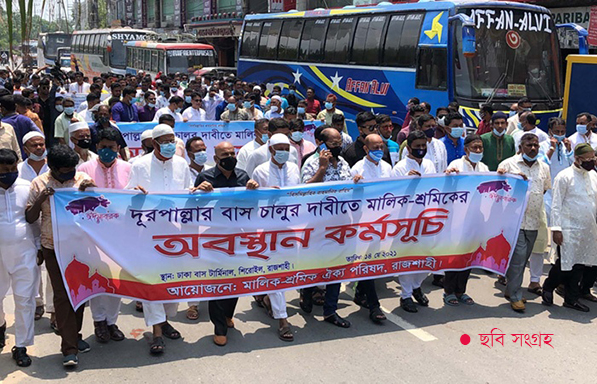 বাংলাদেশ সড়ক পরিবহন মালিক সমিতির সাধারণ সম্পাদক খন্দকার এনায়েত উল্যাহ জানান, করোনায় সরকারি বিধিনিষেধে ৩৭ দিন ধরে দূরপাল্লার বাস চলাচল বন্ধ। এতে করে আয় বন্ধ হয়ে যাওয়ায় পরিবহন সেক্টরে জড়িত কয়েক লাখ শ্রমিক মানবেতর জীবন যাপন করছেন। তাই স্বাস্থ্যবিধি মেনে দূরপাল্লার বাস চালুর দাবিতে সায়েদাবাদ, মহাখালী, গাবতলীসহ দেশের সব জেলার টার্মিনালে পরিবহনশ্রমিক ও মালিকপক্ষের লোকজন অবস্থান কর্মসূচি পালন করেছেন। অবিলম্বে দূরপাল্লার বাস চলাচলের অনুমতি দিতে হবে।