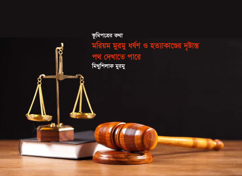 মরিয়ম মুরমু আমার মেজ বোন। আজ থেকে ১০ বছর পূর্বে ২০১১ খ্রিষ্টাব্দের জুলাই ৯ তারিখ দিবাগত রাতে মি. যোহন মারান্ডী, শওকত ইকবাল, অমর কিস্কু ও আন্দ্রিয়াস মুরমু’রা আমার গ্রামের নিজস্ব বাসায় অনুপ্রবেশ করে প্রায় ষাটোর্ধ বয়স্ক বোনকে ধর্ষণ ও বাড়ির পার্শ্ববর্তী গাছে ফাঁসিতে ঝুলিয়ে হত্যা নিশ্চিত করেছে। বৃদ্ধ মা-বাবাকে দেখাশোনার দায়িত্ব নিয়েছিলেন বিধবা বোন মরিয়ম মুরমু। দু’সন্তানের জননী মরিয়ম পুত্র সন্তান উইলসন এবং কন্যা সন্তান কল্পনা মারান্ডীকে বিয়ে দেওয়ার পর মা-বাবার দায়িত্ব কাঁধে নিয়েছিলো। বাবার বাড়িতে থাকাকালীন সময়ই পূর্ব শত্রুতার জের ধরে হত্যাকা- সংঘটিত হয়েছে বলে পুলিশের তথ্যে বেরিয়ে এসেছে। ১৬৪ ধারায় জবানবন্দিতে যোহন মারান্ডী স্বীকার করেছে, ‘ঘটনার দিন রাতে তারা চুরির উদ্দেশে আদিবাসী নারী মরিয়ম মরিমু’র ঘরে ঢোকেন। প্রথম ওমর কিস্কু পেছন দিয়ে বাড়িতে ঢুকে দরজা খুলে দেন। তারা ঘরে ঢুকেই মরিয়মের মুখ চেপে ধরেন এবং বাড়ির পাশে নিয়ে যান। এ সময় যোহন ও ইকবাল তাকে ভয়ভীতি প্রদর্শন ও নির্যাতনের পর ধর্ষণ করে। এরপরে বড়ইগাছের সঙ্গে বেঁধে রেখে তাকে শাসায় এবং ঘরে কী কী আছে, জানতে চায়। আতঙ্কিত মরিয়মের কথা অনুযায়ী তারা আবার ঘরে গিয়ে আলমারিতে রাখা ১৬ হাজার টাকা চুরি করে এবং বাড়ির জিনিসপত্র তছনছ করে। যাওয়ার সময় তারা মরিয়মকে শ্বাসরোধ করে হত্যার পর গলায় ফাঁস দেওয়া অবস্থায় বিবস্ত্র করে গাছের সঙ্গে বেঁধে রেখেই পালিয়ে যান।’ এ ঘটনায় তার ছেলে উইলসন মারান্ডী বাদী হয়ে গোদাগাড়ী থানায় মামলা দায়ের করেন। পরবর্তীকালে আদালতে মামলা উত্থিত হলে বিজ্ঞ বিচারক মি. যোহন মারান্ডী, শওকত ইকবাল ও আন্দ্রিয়াস মুরমু’কে মৃত্যুদণ্ড এবং অমর কিস্কুকে যাবজ্জীবন কারাদণ্ডে দণ্ডিত করেন। তৎকালীন সময়ে ঘৃণিত ঘটনাটি আদিবাসীদের মধ্যে ব্যাপক আলোড়ন সৃষ্টি করে কিন্তু আজও পর্যন্ত দৃষ্টান্তমূলক শাস্তি সরকার নিশ্চিত করতে পারেনি। আলোচিত ধর্ষণ ও হত্যাকাণ্ডে রায় কার্যকারী হলে—